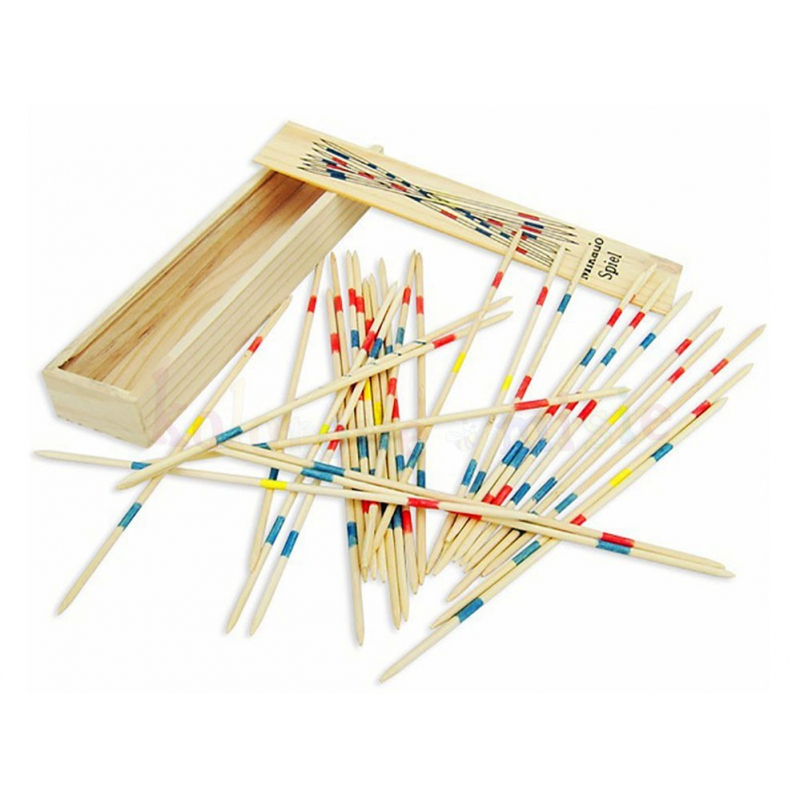 Tyčinky dopadnou na podložku a soupeři pak vytahují z hromádky jednu za druhou.